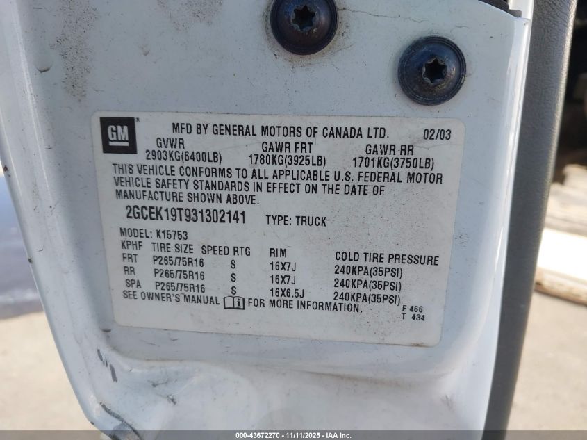 • 2GCEK19T931302141