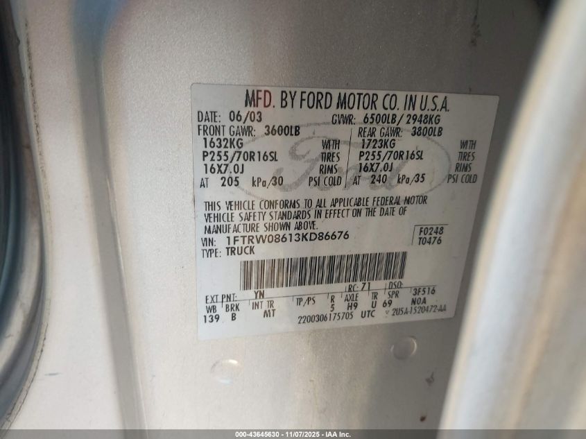 • 1FTRW08613KD86676