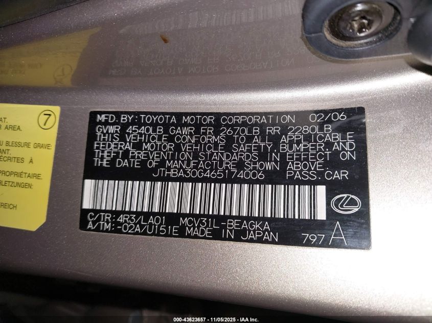 • JTHBA30G465174006