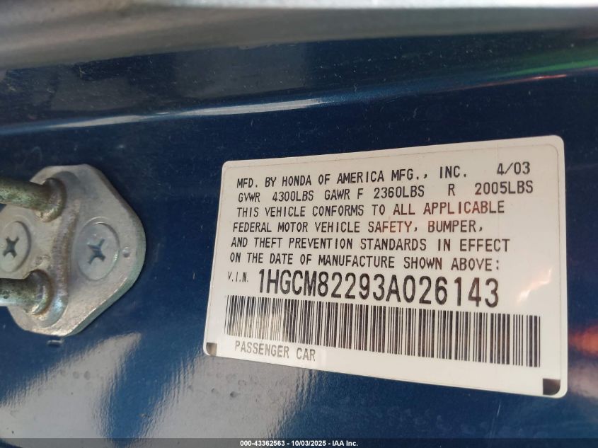 • 1HGCM82293A026143