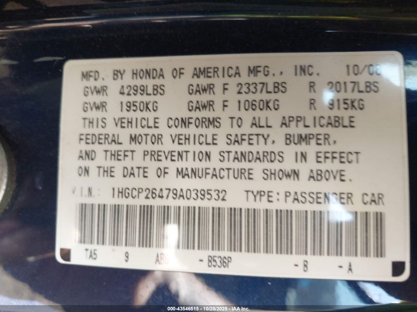 • 1HGCP26479A039532