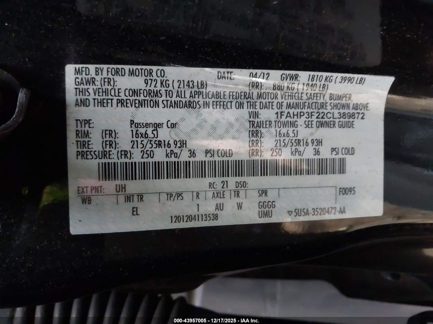 • 1FAHP3F22CL389872