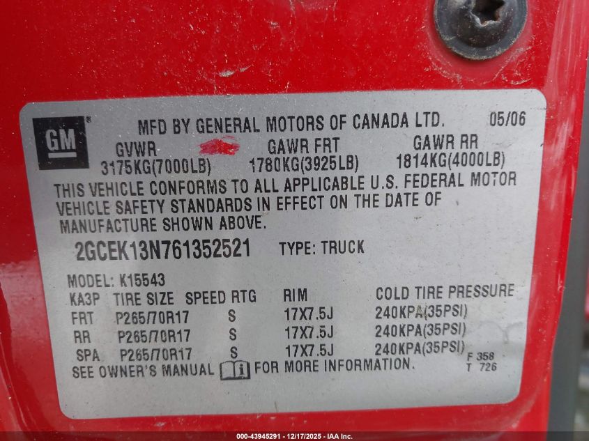 • 2GCEK13N761352521