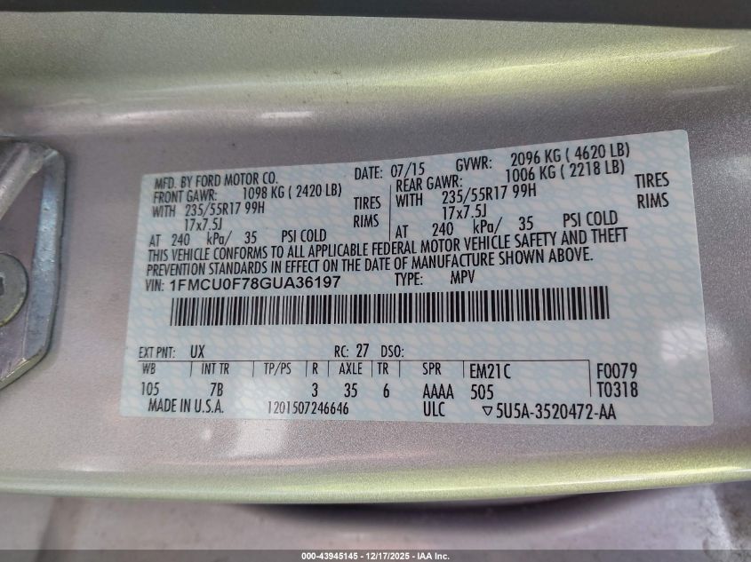 • 1FMCU0F78GUA36197