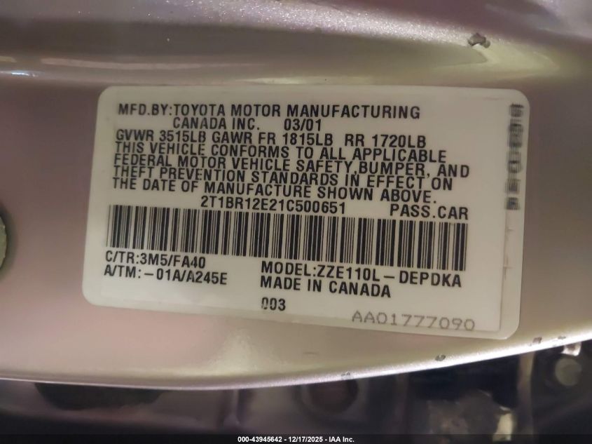 • 2T1BR12E21C500651