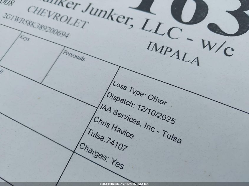 2008 CHEVROLET IMPALA LS for Sale in Tulsa, OK