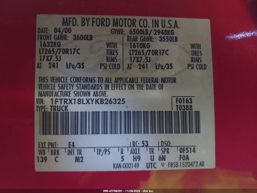 • 1FTRX18LXYKB26325