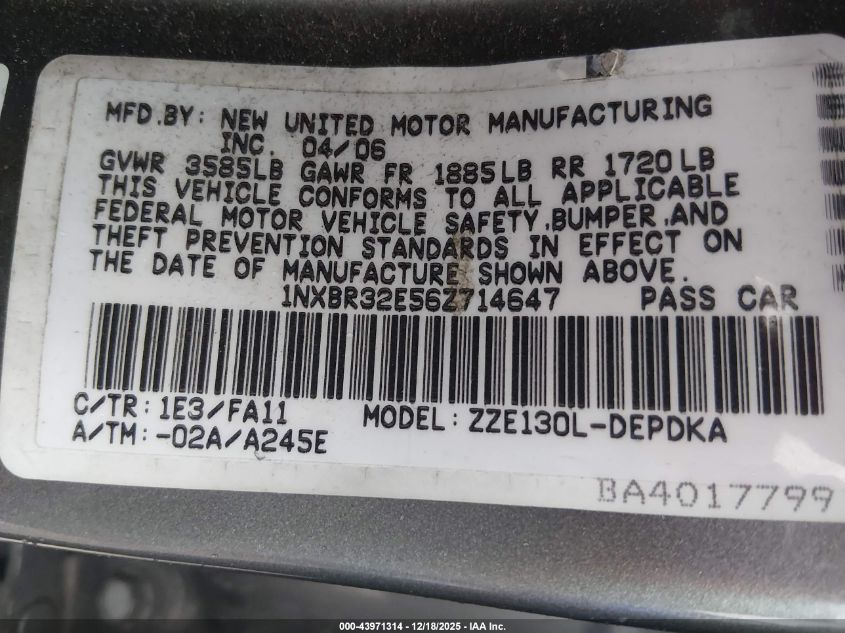 • 1NXBR32E56Z714647