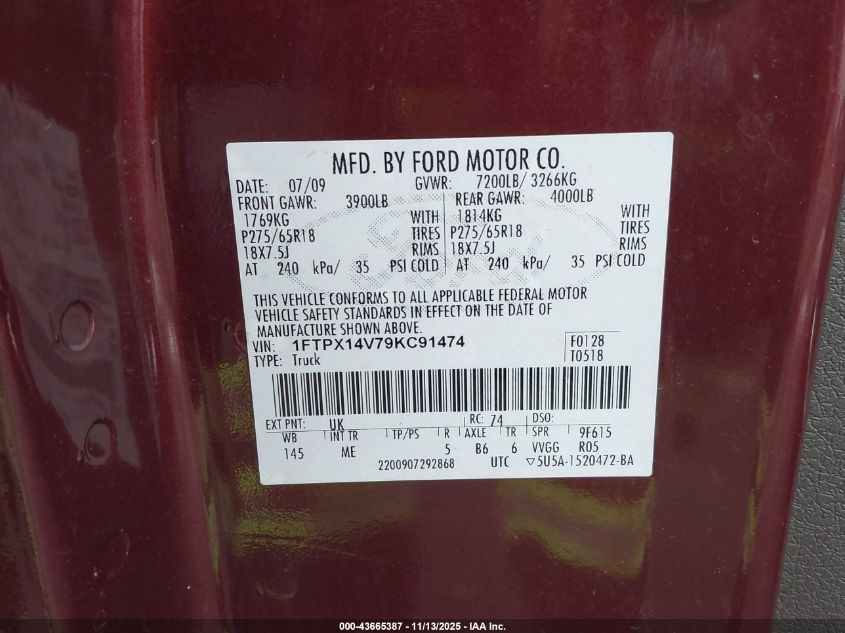 • 1FTPX14V79KC91474