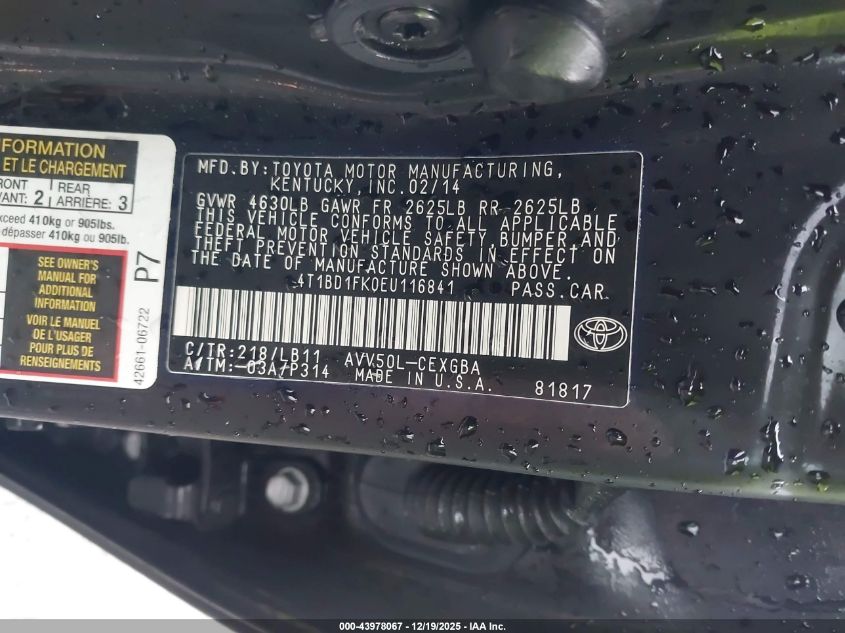 • 4T1BD1FK0EU116841