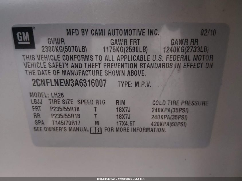 2010 CHEVROLET EQUINOX LT for Sale in Brandywine, MD