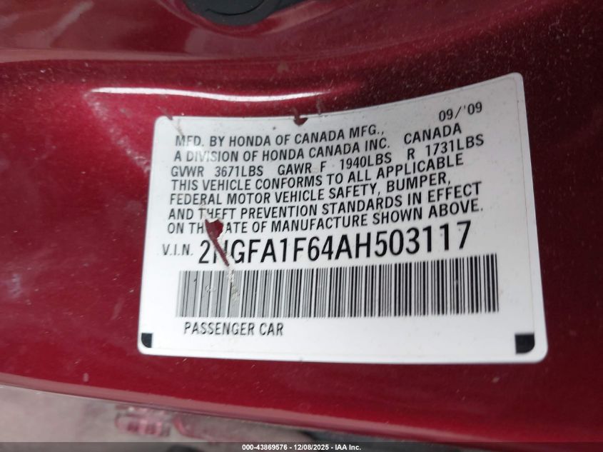 2010 HONDA CIVIC LX-S for Sale in York Springs, PA