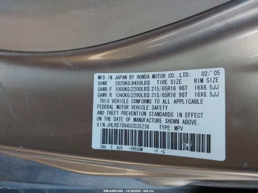 2005 HONDA CR-V SE for Sale in Ks City, KS