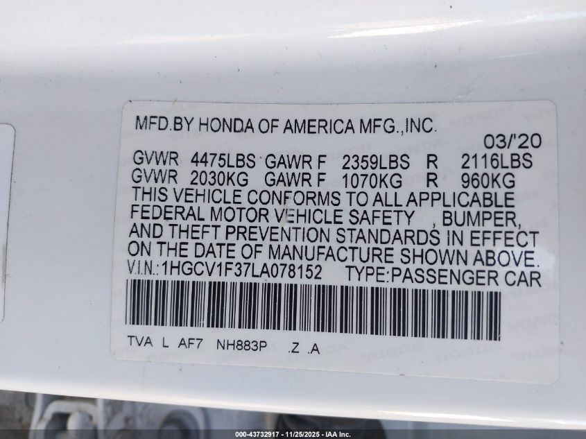 • 1HGCV1F37LA078152