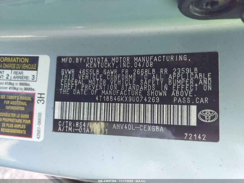 • 4T1BB46KX9U074269