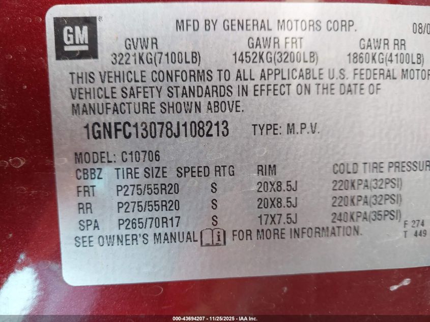 • 1GNFC13078J108213