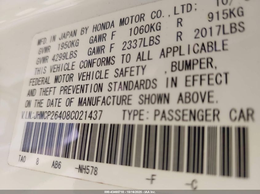 • JHMCP26408C021437