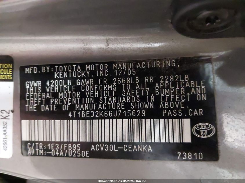 • 4T1BE32K66U715629