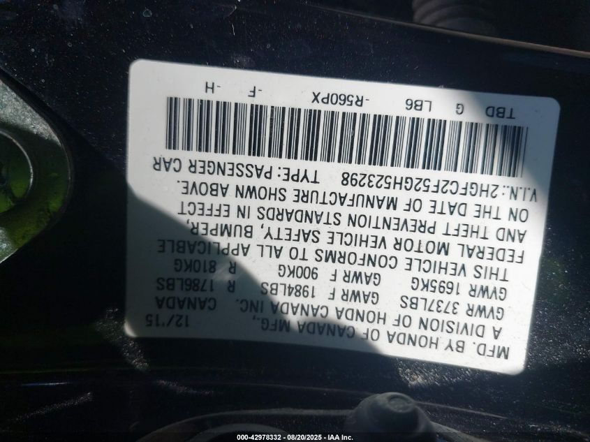 • 2HGFC2F52GH523298