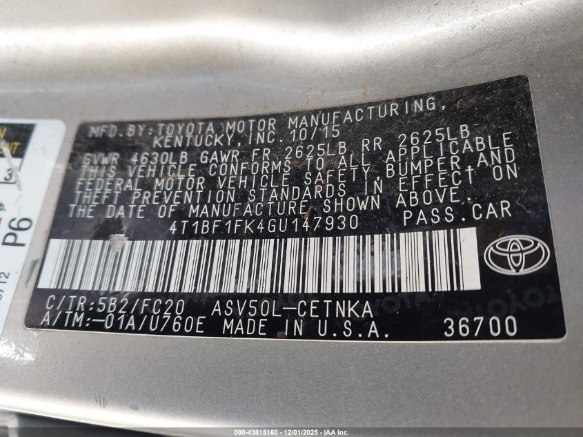 • 4T1BF1FK4GU147930