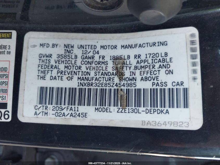 • 1NXBR32E85Z454985