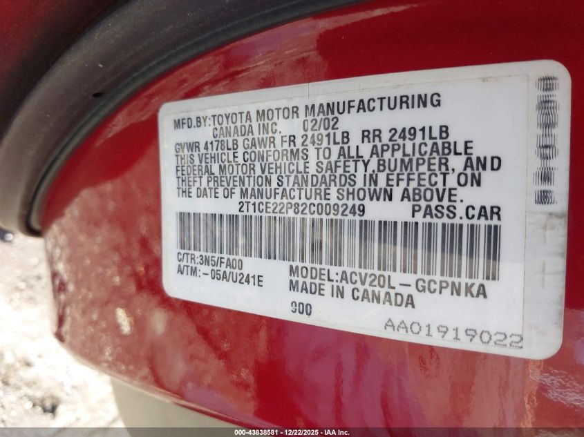 2002 TOYOTA CAMRY SOLARA SE for Sale in Brandywine, MD
