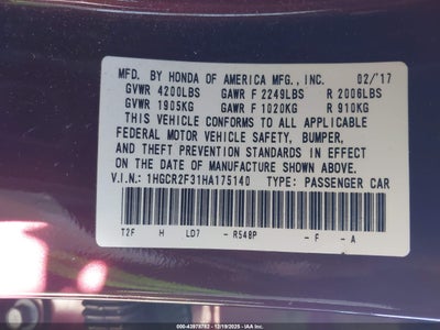 • 1HGCR2F31HA175140