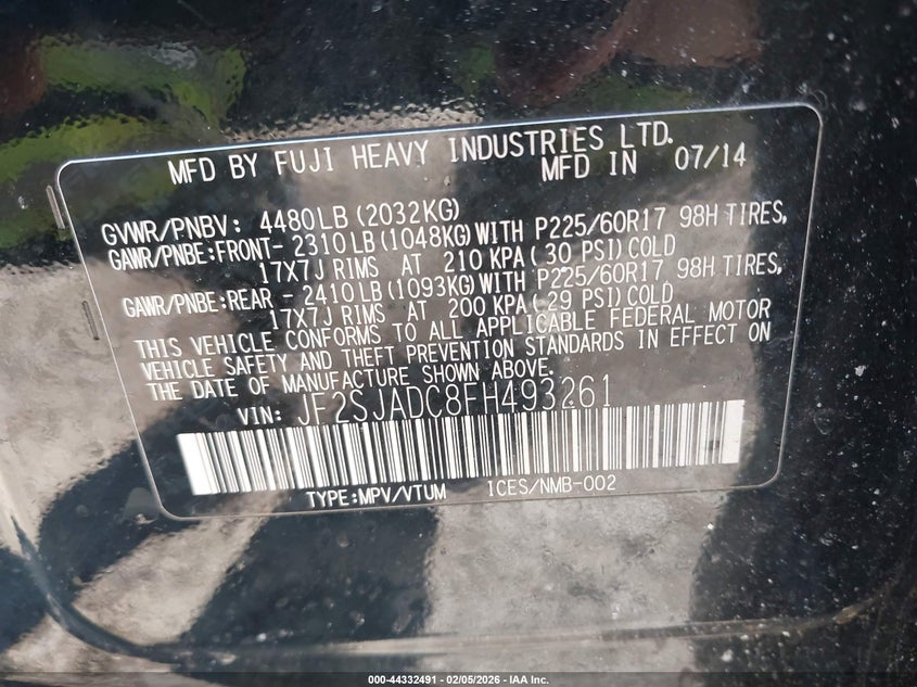 • JF2SJADC8FH493261