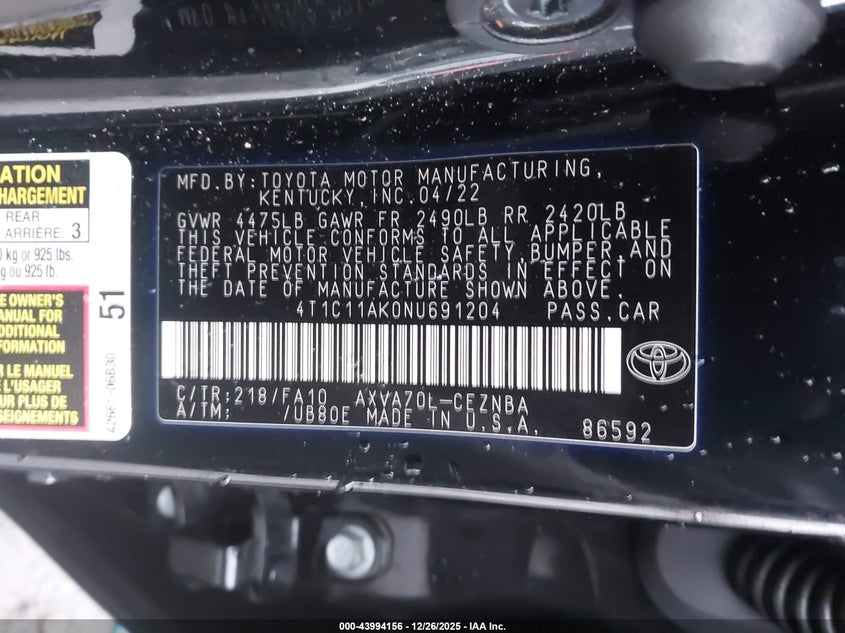 • 4T1C11AK0NU691204