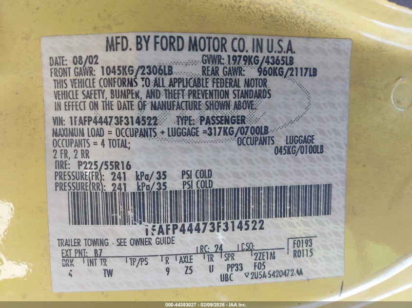 • 1FAFP44473F314522
