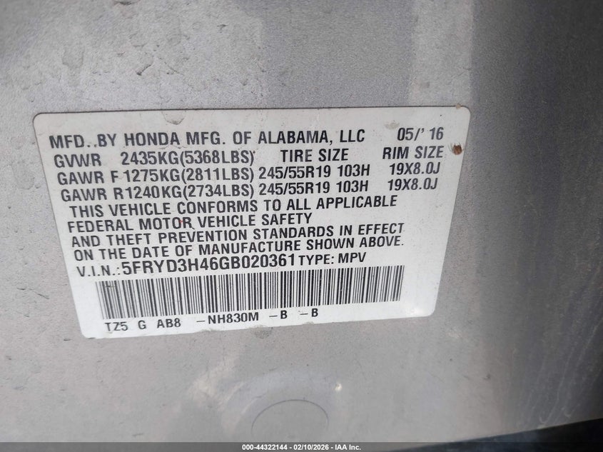 • 5FRYD3H46GB020361