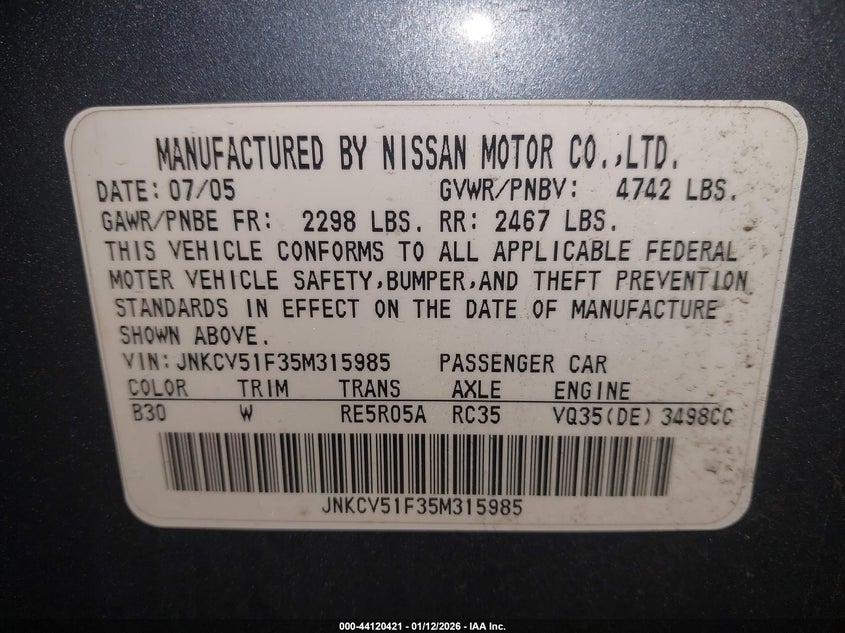 • JNKCV51F35M315985