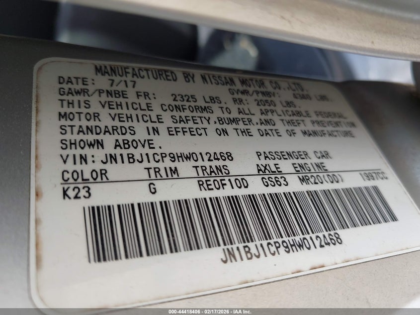 • JN1BJ1CP9HW012468
