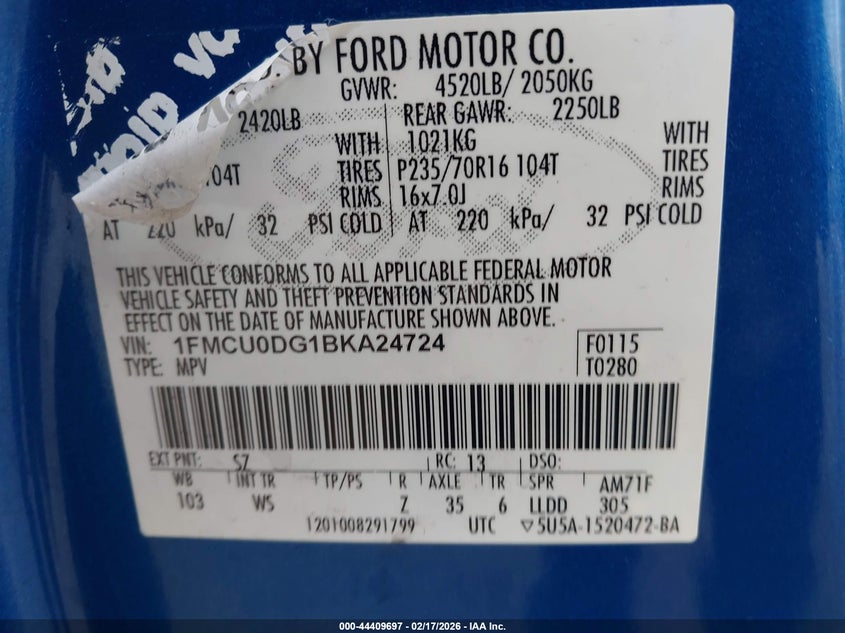 • 1FMCU0DG1BKA24724
