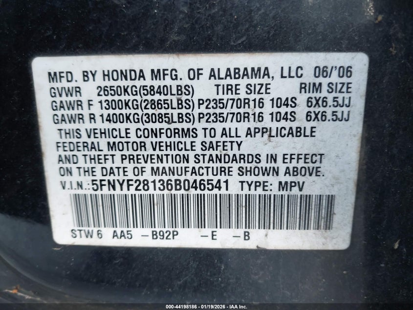 • 5FNYF28136B046541