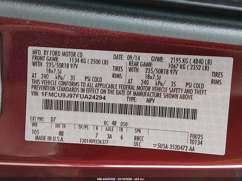 • 1FMCU9J97FUA24294