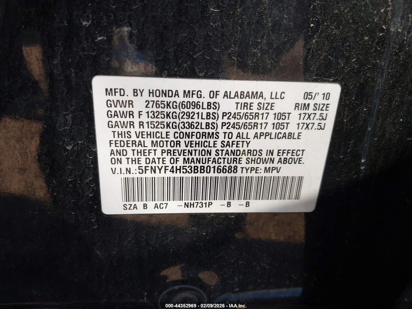 • 5FNYF4H53BB016688