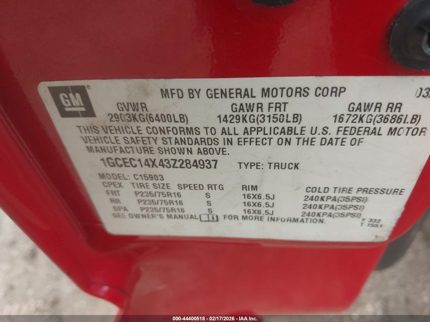 • 1GCEC14X43Z284937