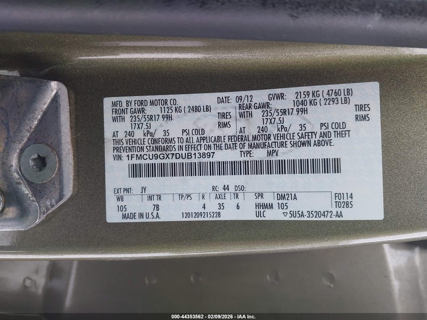 • 1FMCU9GX7DUB13897