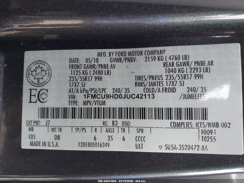 • 1FMCU9HD0JUC42113