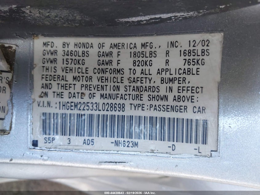 • 1HGEM22533L028698