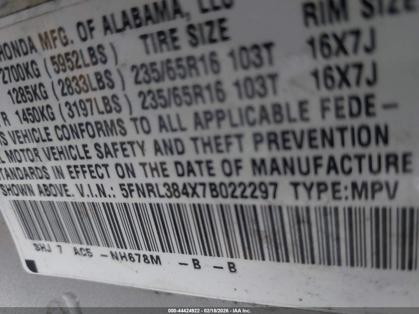 • 5FNRL384X7B022297