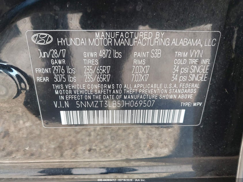 • 5NMZT3LB5JH069507