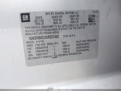• 1GNSKBKC3GR207422