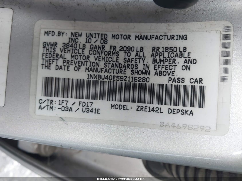 • 1NXBU40E59Z116280