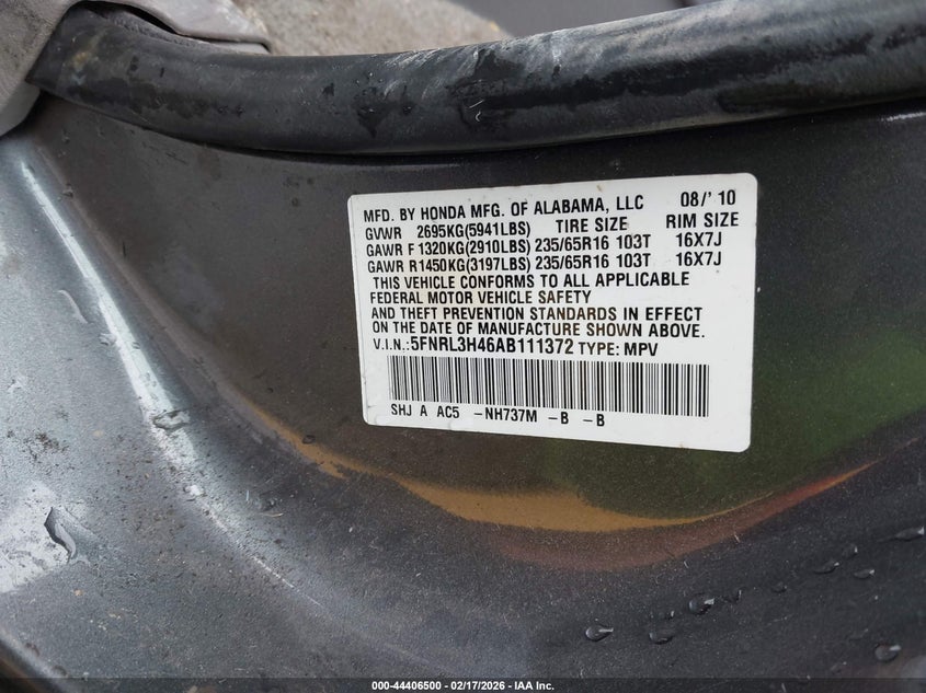 • 5FNRL3H93AB106822