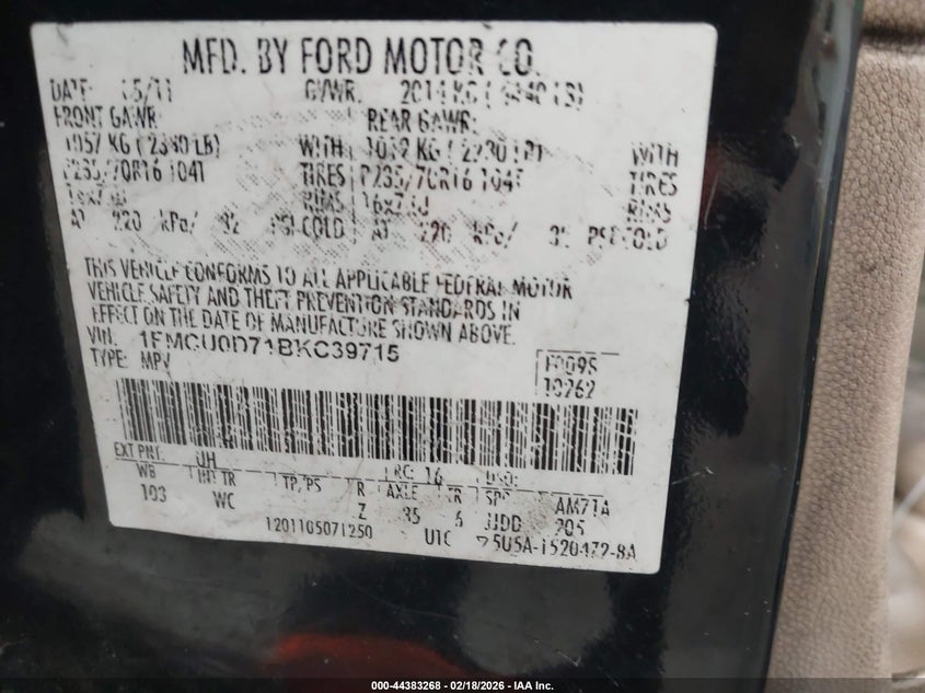 • 1FMCU0D71BKC39715