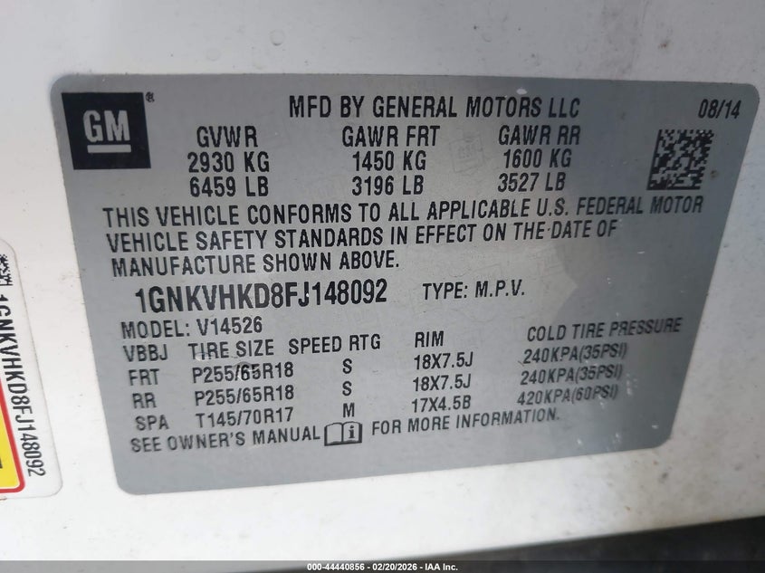 • 1GNKVHKD8FJ148092