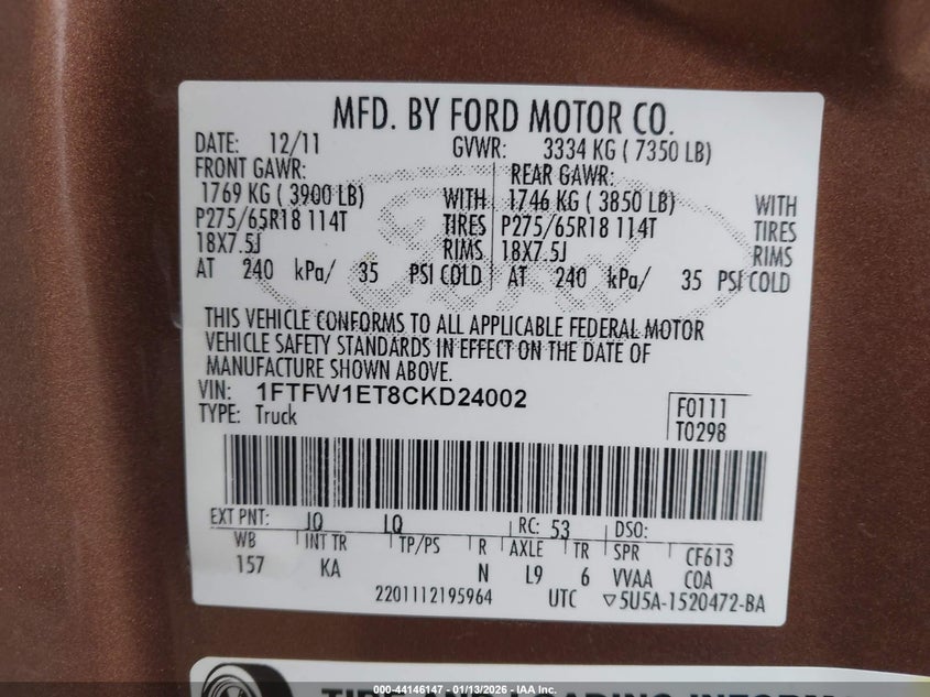 • 1FTFW1ET8CKD24002
