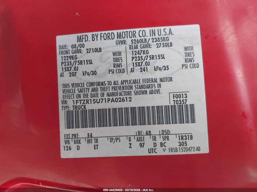 • 1FTZR15U71PA02612